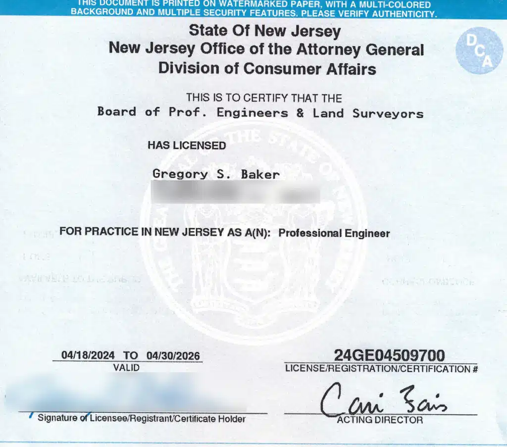 New Jersey’s State Board of Professional Engineers and Land Surveyors licenses and regulates professional engineers and companies offering professional engineering services within the state.